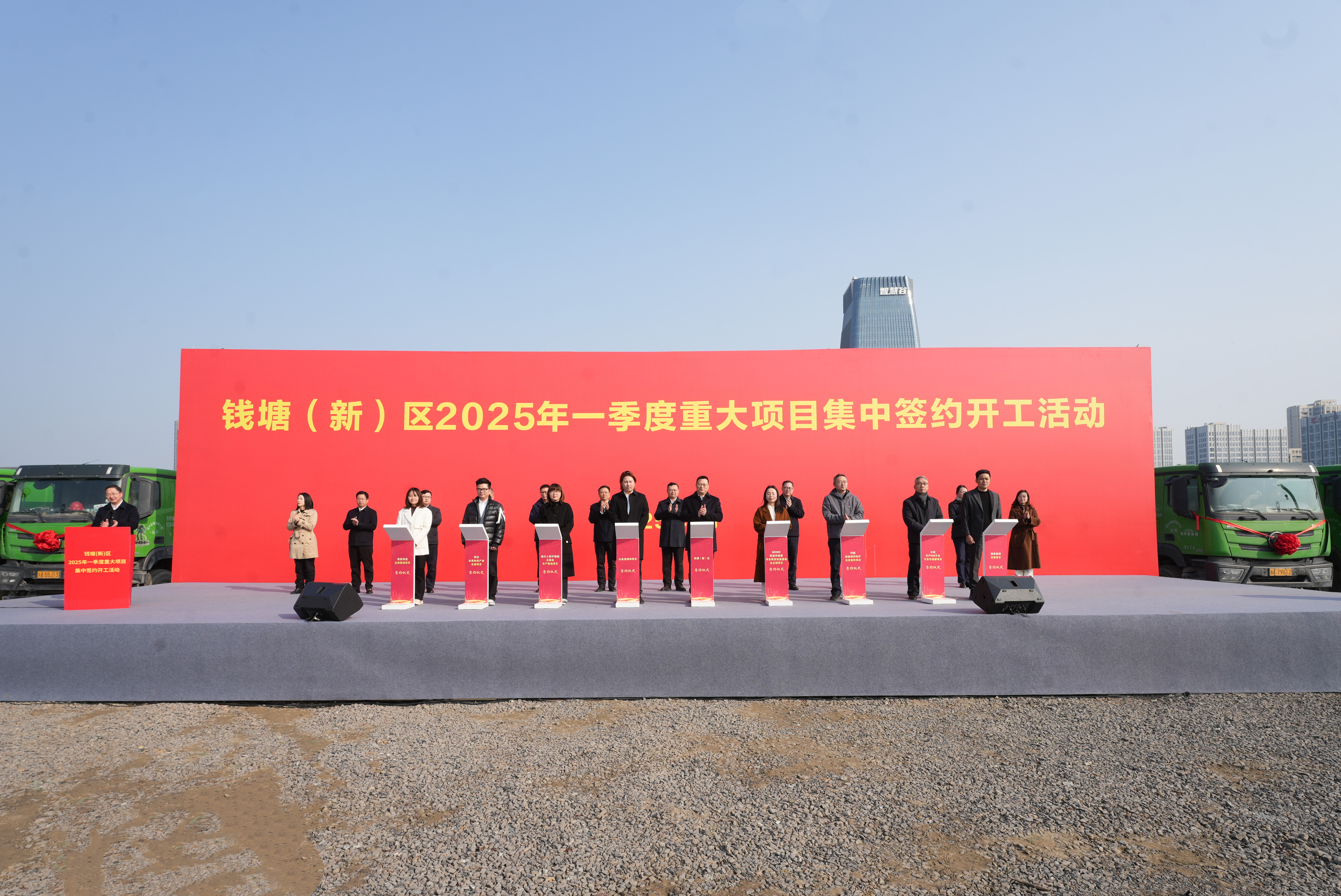 2月13日,随着工程机械轰鸣声响起,钱塘(新)区总投资超150亿元的18个重大项目正式启动。