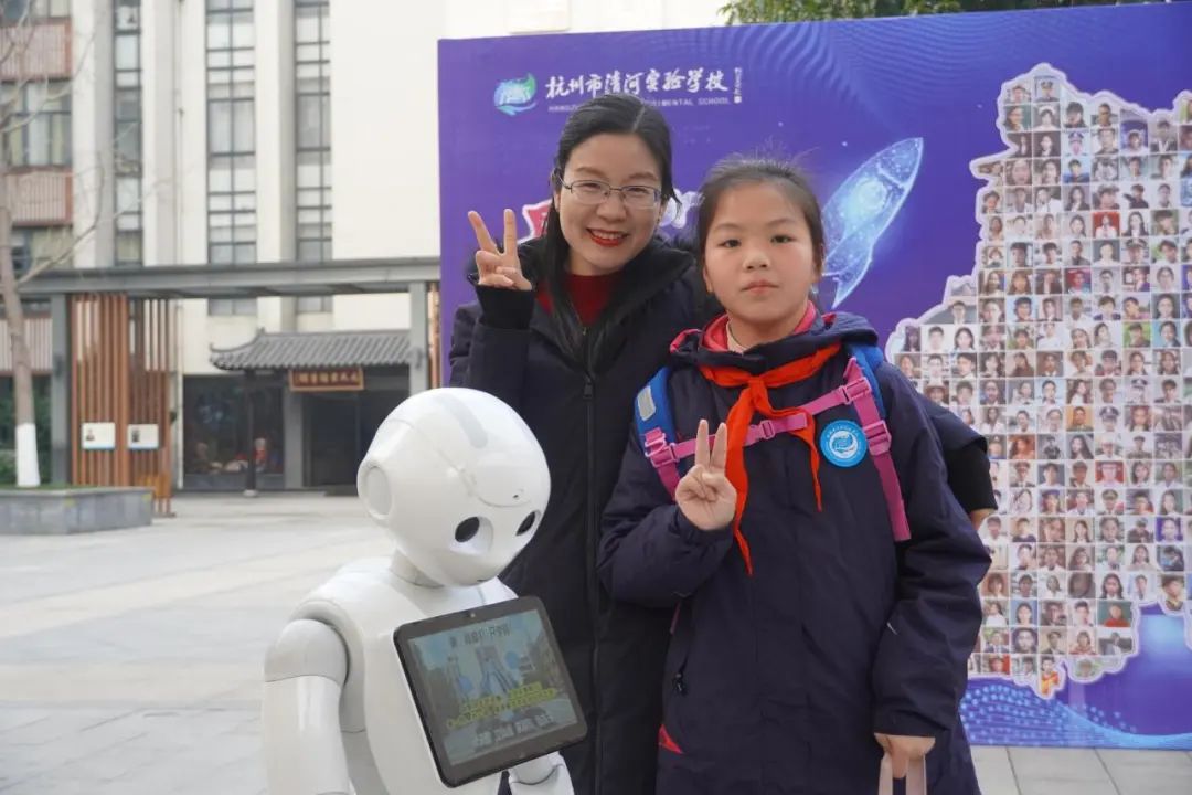 杭州市清河实验学校门口AI机器人“清河小综”正以灵动的语音迎接学子归来。这个搭载多模态交互系统的“新同学”,拥有丰富的知识储备,能够与同学们进行互动交流,为大家带来了别样的开学体验。最引人注目的是展示墙上由学生寒假里AI合成的自己的未来职业形象模拟照片拼成了“未来杭州图景”,许多新兴职业形象跃然屏上,引得同学们驻足讨论,与“十年后的自己”合影打卡。
