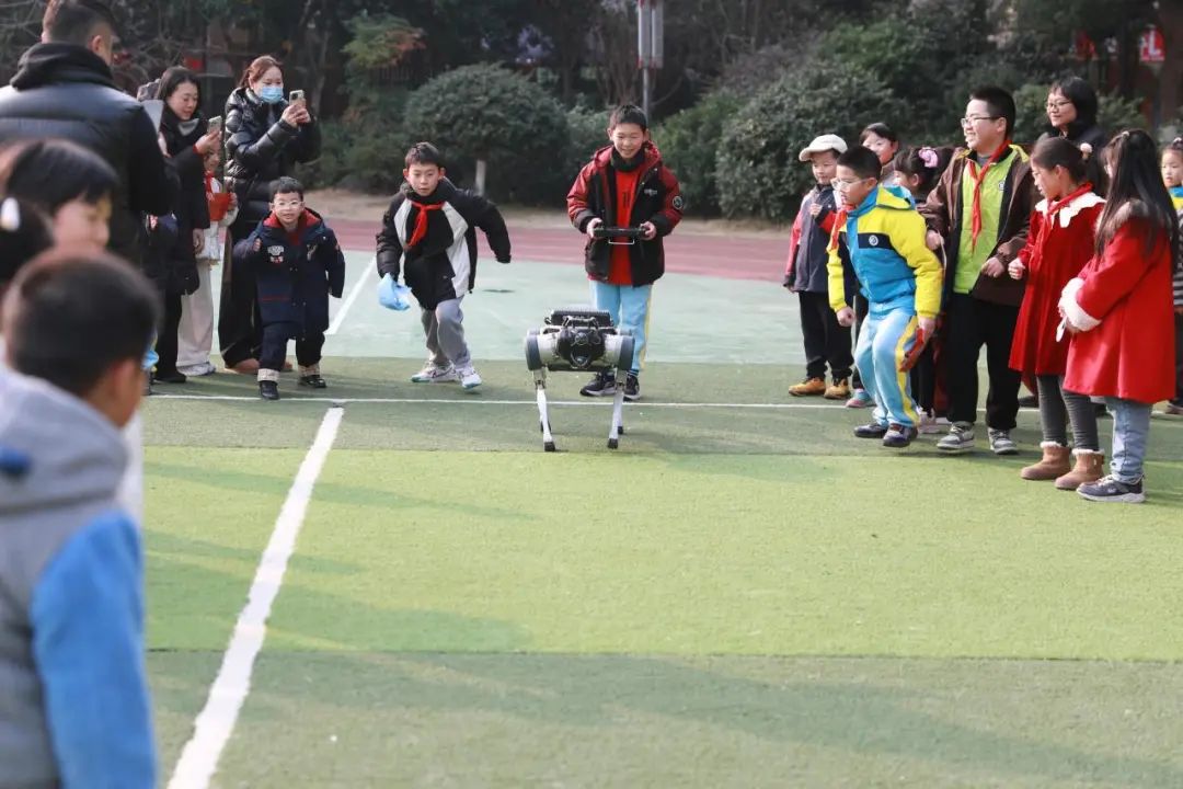 在杭州市胜利小学,云深处科技的四足机器人“绝影X30”这位AI同学的到来,让同学们惊喜不已,很快就和同学们“打”成一片。“加油!加油!”操场边正响起此起彼伏的加油声。化身运动健将的机器狗在操场上和同学们展开了一场紧张激烈的角逐。那些原本不爱运动的同学们也在机器狗的影响下,迈开脚步,加入到了运动的队伍中,挥洒汗水的同时,也体验到了运动带来的快乐。
