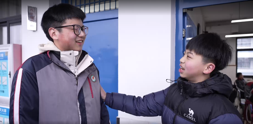 潘奕辰的同学(右)滔滔不绝地夸赞潘奕辰(左)