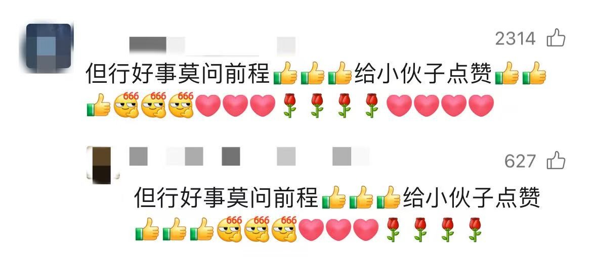 20日一早,潘奕辰的善举很快在班级甚至学校传开了,同学们知道后都沸腾了。潘奕辰的同学纷纷为他点赞,一位好朋友表示:觉得意外但也不意外,意外的是自己的身边人成了“网红”,不意外的是觉得这确实是他会做的事情。还有同学直言,他平时就特靠谱,甚至有同学激动到发了朋友圈,为能拥有这样的同学感到骄傲。