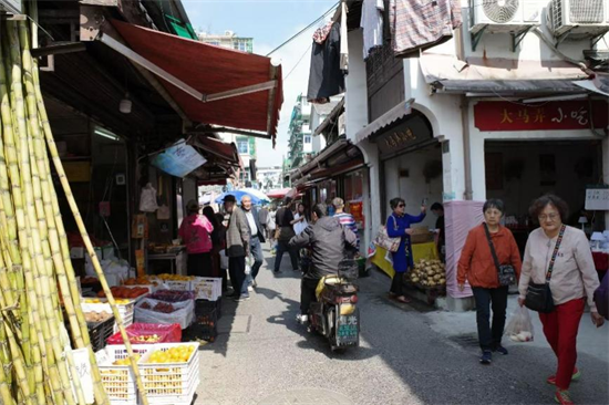 大马弄露天菜市场依旧熙攘,但外摆的范围经过了规范调整,改造后为摊贩提供了木制货架,酱鸭腊肠悬挂在复古竹架上,成为“出片神器”。