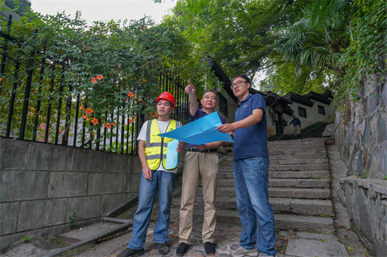 最令人期待的是对历史风貌的保护。改造团队坚持“不拆一间房、少干预为主”,修旧如旧。住户最关心的晾晒问题,也通过定制晾衣架和集中晾晒区解决。像晓霞弄的不锈钢晾衣架,设计成云头纹样式,与青砖黛瓦相映成趣。另外,破损的水泥台阶保留原石,仅做找平处理。老墙上黑乎乎的燃气管支架,变身“晓霞”文化景观柱。文化部门全程参与,确保每一处修缮都符合历史原貌,连晾晒酱鸭的竹竿都统一更换为可拆卸的定制款,既实用又保留烟火气。