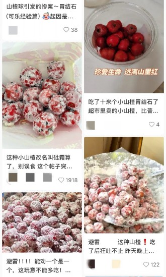 发病前,李女士二刷了《哪吒2》后,被影院外某网红店的“糖霜山楂球”吸引,买了十几个,回家一口气吃完。没到半夜,她就出现了恶心、呕吐,肚子疼到怀疑人生。她赶紧掏出手机搜自己的症状,与网上不少人说的“胃结石”症状差不多,其中有人也是因食用山楂制品得此病。