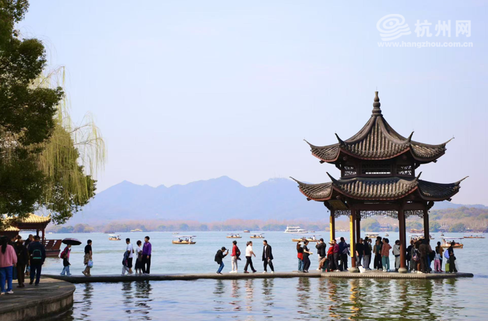 周末的好天气让大家纷纷走出家门,来到西湖畔感受春天的气息,景区内游人如织,热闹非凡。