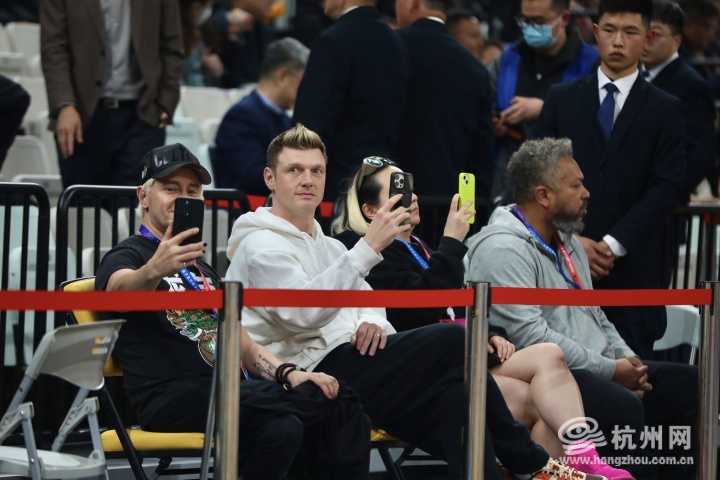 比赛开始前,著名乐队“后街男孩”主唱尼克·卡特现身黄龙体育馆,让现场球迷大呼惊喜,成了比赛的一大“彩蛋”。当天下午,他还与广厦男篮的球员们打了一场友谊赛,可谓“梦幻互动”。比赛中,他频频拿出手机拍摄,为球员的表现鼓掌,也向球迷挥手致意。