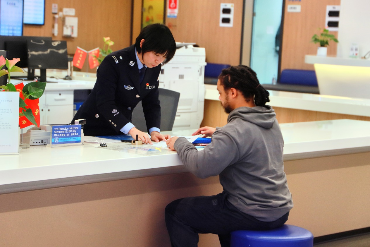 上午9点,萧山公安出入境管理大厅内已是人头攒动。“你好,请问在哪里补办身份证?”“警官,我要办护照!”在这个集纳了出入境、户籍、交通管理等业务的大厅里,民警们正忙碌地为群众办理各类业务。与此同时,一段流利的英文对话吸引了众人的注意——“Excuse me, What business do you need to handle?”“I would like to apply for a visa extension.”在“一窗通办”窗口,沈艺正用娴熟的英语辅助民警给一名亚美尼亚小伙办理签证延期业务。沈艺是大队的“翻译小能手”,拥有英语专业八级资格证书的她,面对“初来乍到”的外国人,总是耐心地为他们解释办理流程、整理材料。尽管沈艺是英语专业毕业,在旁人眼中已是英语高手,但她坦言:“只有自己知道,真正和外国人交流时,还是会遇到各种问题。”不同的英语口音,还是复杂的专业术语,都曾让她感到犯难。然而,经过无数次与外籍人员的沟通和实践,沈艺逐渐积累了经验,如今已能从容应对各种挑战。她笑着说:“每一次交流都是一次学习,每一次服务都是一次成长。”