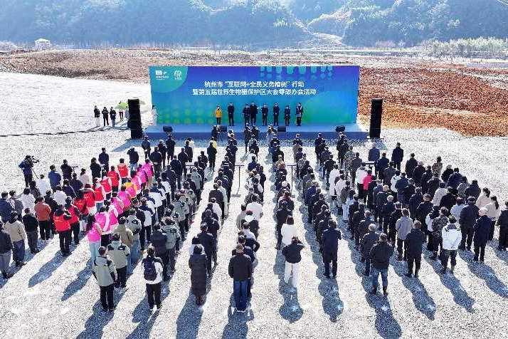 3月17日,杭州市“互联网+全民义务植树”行动暨第五届世界生物圈保护区大会零碳办会活动在临安区天目山未来谷项目建设现场举办。浙江省林业局副局长陆献峰,杭州市人民政府副秘书长程晓东,市林水局党组书记、局长马骏,临安区委书记杨国正,区委副书记、区长杨泽伟,区人大常委会主任钱美仙,区政协主席李赛文等出席活动。