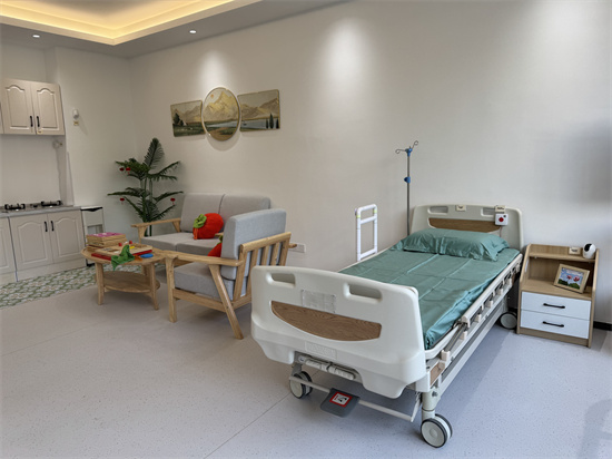 这套样板间模拟居住房屋结构,展示了改造后的厨房、卫生间、客厅等居家功能区,如多功能护理床、适老橱柜、无障碍扶手等适老化用品,居民可一站式体验,并根据自身需求进行选购。同时,样板间还嵌入智能监测设备,比如卧室的一键呼叫按钮,客厅的人体红外线感应器和防摔倒助行器。当老人发生意外或者通过紧急按钮呼叫,仪器立即自动连通呼叫平台,平台会将信息同步发送给监护人、社区以及平台服务人员,确保老人第一时间得到帮助。