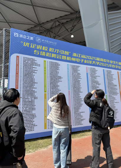 “去招聘会啊!”一个男生说道。他所说的招聘会,就是当天下午举行的“优企进校 招才引智”浙江省2025届高校毕业生专精特新中小企业专场招聘会暨杭州电子科技大学2025年春季综合招聘会。