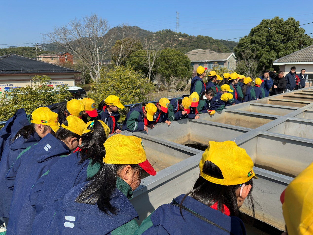 活动中,学生们化身“节水小卫士”,在高虹水厂负责人的带领下,近距离观察了净水装置系统的运作流程。从原水的混凝、沉淀、过滤到消毒,孩子们见证了浑浊水源“变身”清澈自来水的全过程。水厂技术人员现场简单演示了制水工艺,为学生讲解每一环节的科学知识。