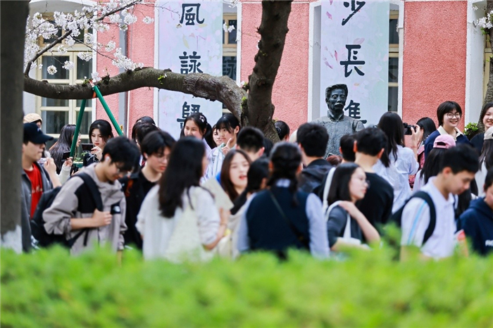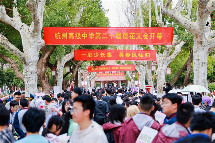 3月23日下午,杭州高级中学一年一度的樱花文会在贡院校区启幕,今年也是杭高樱花文会20周年。二十次似锦繁花,这不仅是属于杭高人最诗意的身份认同,它也面向社会开放,成为杭城中学界最大的文学盛会、社团盛会。