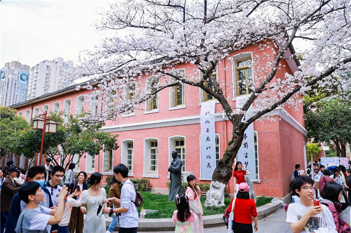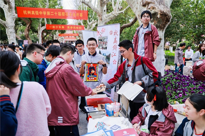 在这个春日,每个人都是主角。樱花树下,摆摊吆喝、舞蹈表演、唱歌……挥洒属于青春的蓬勃,张扬属于青春的活力。正如书记唐新红所说:“杭高的樱花见证过李叔同的艺术人生,领略过吴自良的科研传奇,聆听过董石麟的建筑梦想,目睹过陆盈盈的青春岁月……而今它更期待见证你们的成长。”