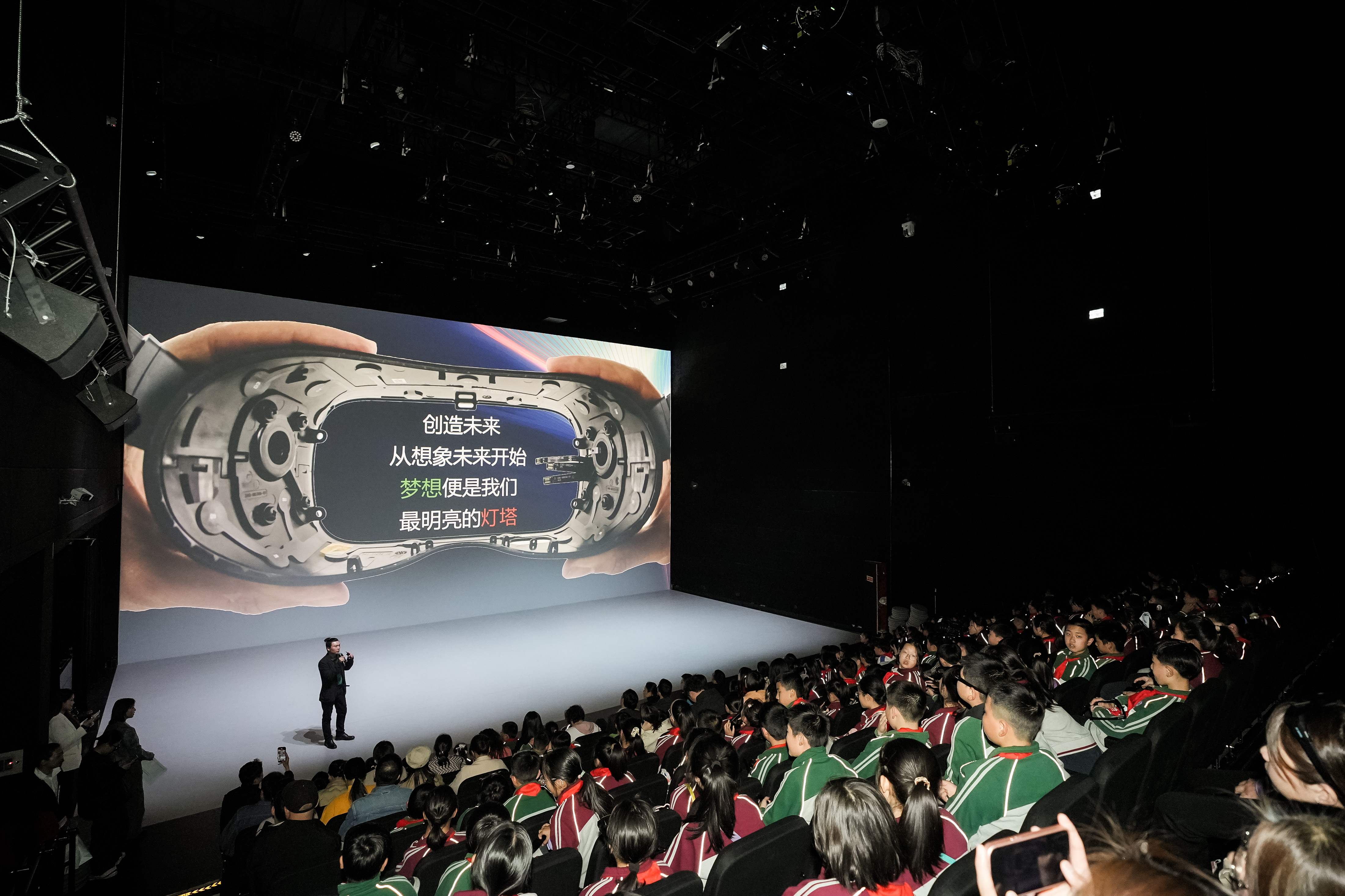“让我们一起走进宇宙深处来探究一下它的奥秘吧!现在我们看到离我们最近的就是地球。”戴上3D眼镜,在场的观众们体验了8K沉浸超高清探索空间,太空中的美丽景色直观地展现在观众眼前,大家都被深深吸引,仿佛置身于一场宇宙的奇妙旅行中。