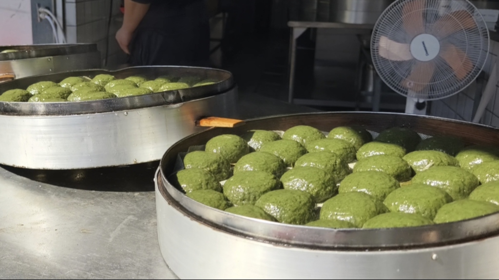 “现在有太多方法去延长青团的保质期了。”郑老板告诉记者,“但我们还是想坚持老手艺,让老味道留在顾客身边。”话说着,新一屉青团开盖,人群里也炸开了锅,消费者分享着自己的储存经验,有用冰箱冷冻的、有用真空包分隔保鲜、还有的用油煎的,“油煎过的青团口感更好,外脆里糯,常温放置一周内都不会坏。”一名80岁的老街坊告诉记者,青团皮得用纯糯米粉来制作,才会形成软中带韧的口感,馅料最好选肥瘦相间的五花肉,“不能用纯肥肉,不然粘在嘴里下不去,吃起来还发腻。”