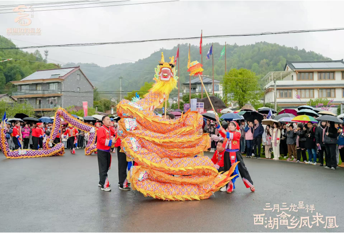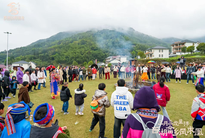 3月29日,桐庐县莪山畲族乡龙峰民族村沉浸在一片欢腾的海洋中。“三月三龙呈祥,西湖畲乡凤求凰”民俗文化消费季在此拉开帷幕,吸引近千名游客共赴这场春日里的民族文化盛宴。