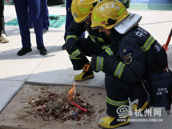 面对突发火情,如何正确应对?消防员现场示范了正确处置方式。