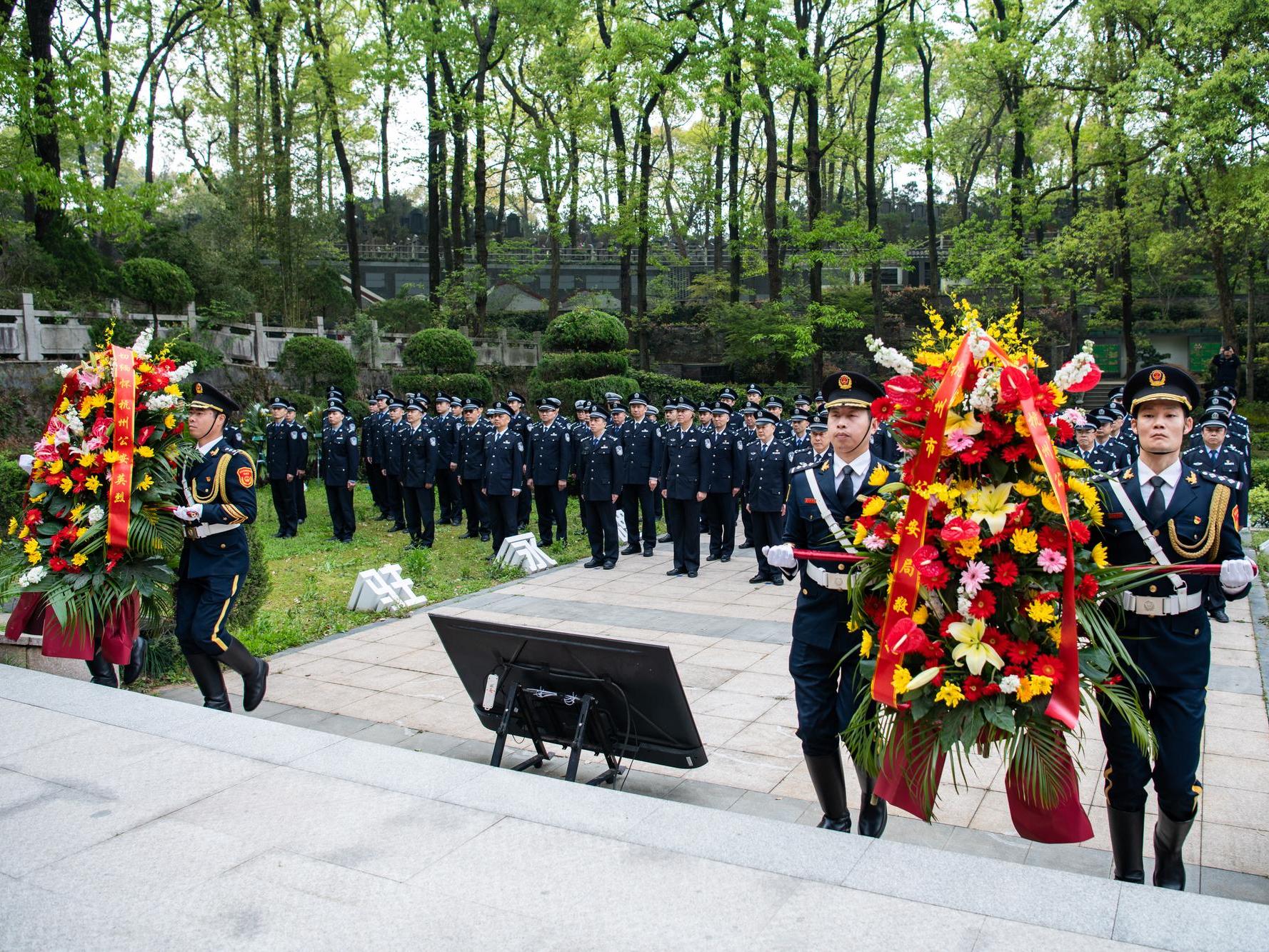 4月3日上午,杭州市公安局机关民警代表齐聚南山陵园警魂苑,参加祭奠公安英烈活动,深切缅怀为守护杭城平安英勇牺牲的公安英烈。