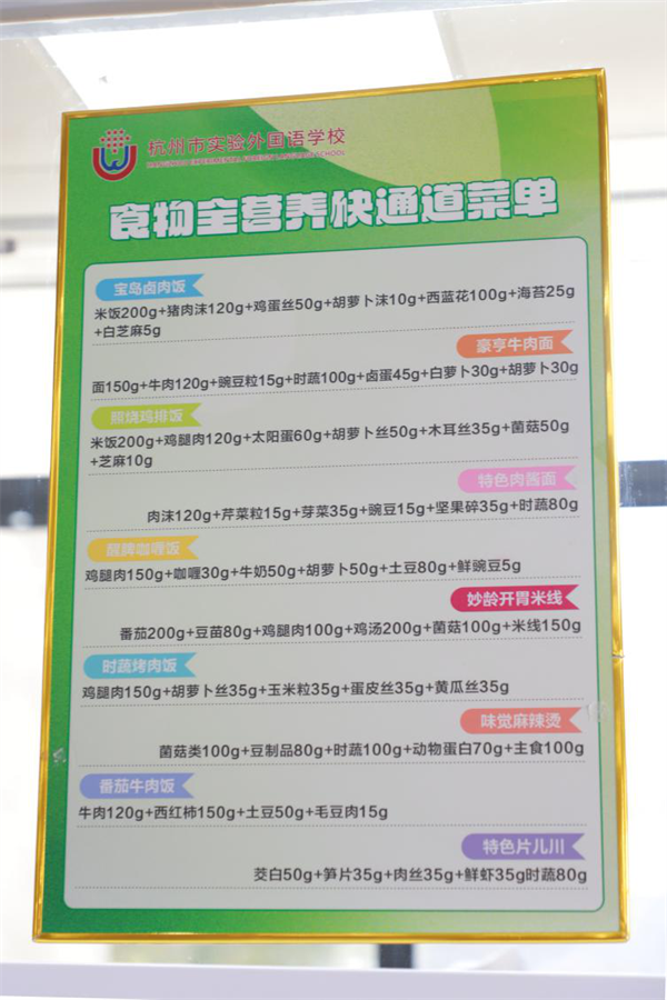食堂窗口上的“食物全营养快通道菜单”会根据高中生每天需要摄入的营养物质给学生推荐菜品,每份套餐严格遵循《中国居民膳食指南》,每份食物的食材计算都精确到克。牛环东向记者介绍:“15岁到17岁,他们是处于一个脑力劳动高强度的一个学习状态,并且这个优质蛋白是不可缺乏的,同时还要保证孩子的膳食纤维的摄入。”营养搭配均衡后,谢同学的体重从一开始的190斤减到现在150斤,瘦了40斤左右。