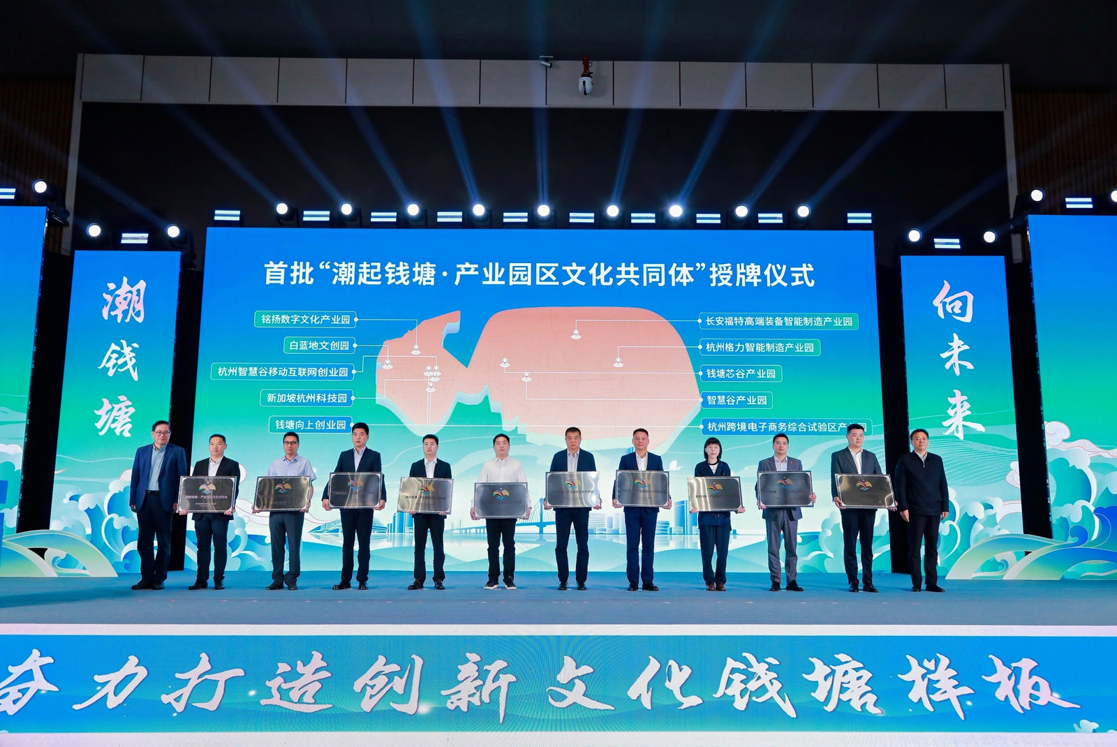 会上举行了“潮起钱塘·产业园区文化共同体”授牌仪式,为首批十家产业园区文化共同体授牌。今年还将打造30个文化共同体,为产业工人提供学习交流、文化服务、休闲娱乐的公共文化空间,全面赋能钱塘产业发展。