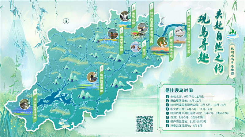 杭州观鸟手绘地图新鲜出炉,快来按图索“翼”!