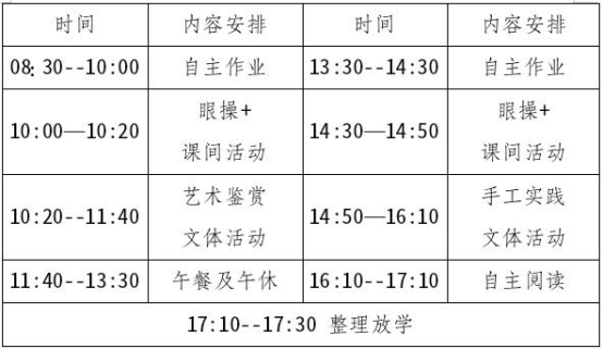 上城区为切实解决双职工家庭春假期间的实际需求,推出了“春意暖暖漫上城”春季托管服务。在全区开设5个集中春托服务点,旨在打造家校社协同的“超幸福”春托。此次春假托管服务面向春假期间家长看护有困难、有托管需求的上城区一至八年级学生,服务时间为 4月27日至4月30日,每天8:30—17:30。