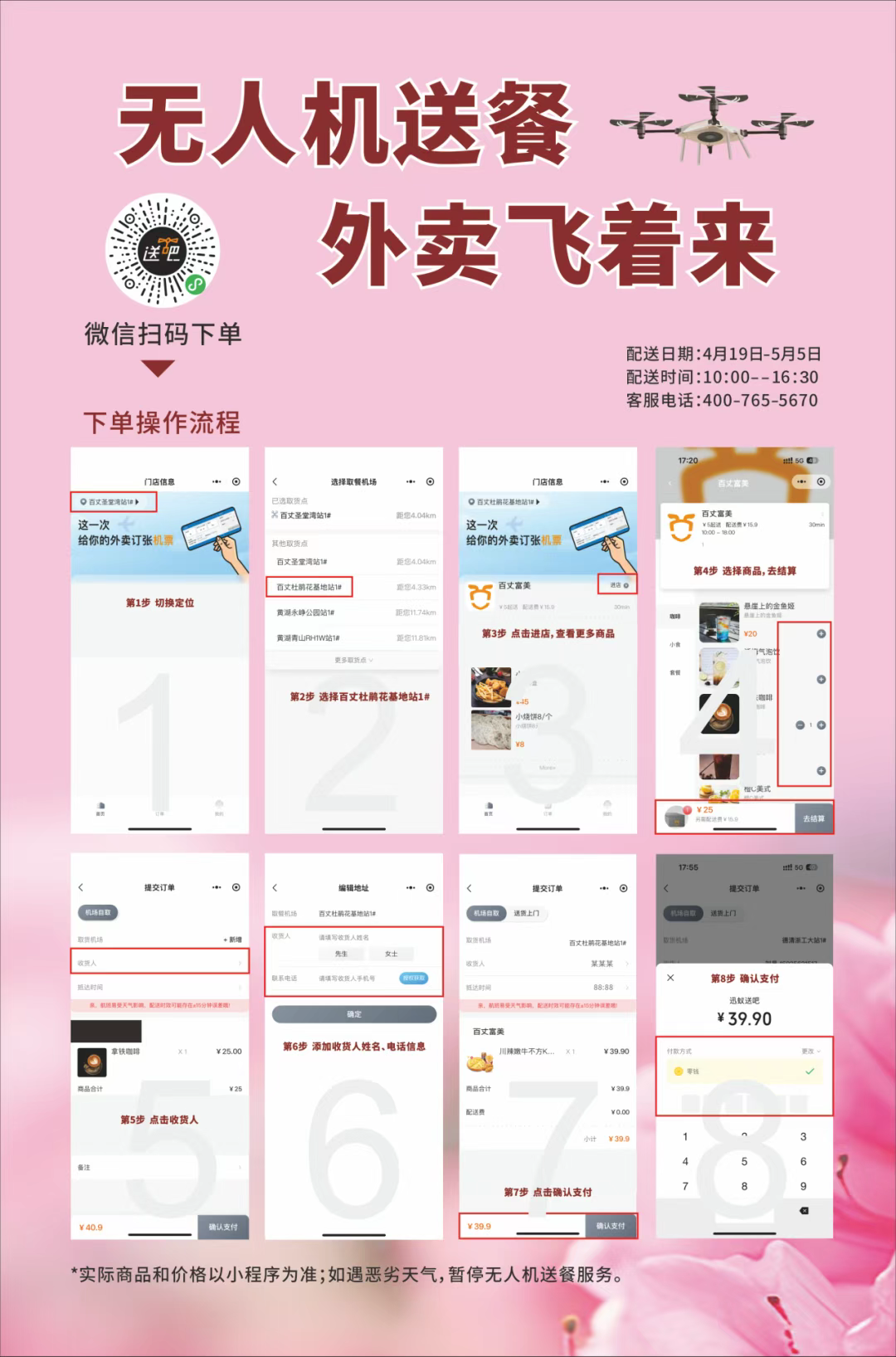 扫码下单,便可坐等无人机“外卖小哥”送达,在山顶享受美食空投:现磨咖啡、气泡饮、酥脆薯条、青圆子、竹筒饭……