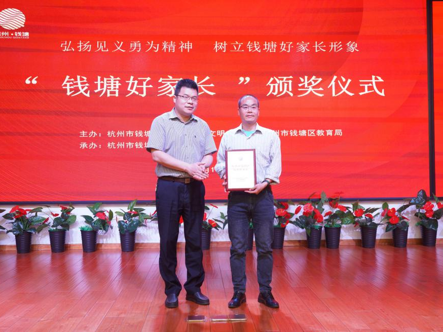 4月18日,由钱塘区委宣传部(区文明办)、区教育局、团区委以及白杨街道联合主办的“钱塘好家长”颁奖仪式在杭州市钱塘区文清小学举办,这是为了表彰一位普通的父亲——陈小荣,他和他跑团朋友们在危急关头救起两名落水者,用行动诠释了真正的英雄精神。
