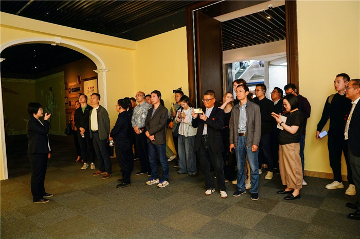 开幕式后,策展人陈娜带领现场嘉宾与观众,开启沉浸式观展之旅。从阳伞的起源到阳伞的丰富类型,再到中西之间伞的交流与融合、中国近代伞业的发展,观众在讲解中全面领略了“阳伞”这一媒介在中西文化交流中的作用和意义。