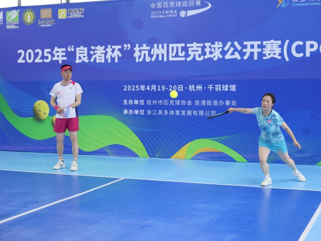 4月19日,2025年“良渚杯”杭州匹克球公开赛(CPC-300)暨“百场千人”匹克球公益培训活动启动仪式在余杭区良渚街道的千羽球馆举行。作为上半年省内最高级别的匹克球赛事,本次比赛设有男单、女单、男双、女双、混双5个组别竞赛项目,吸引了全国各地的120名爱好者参加。