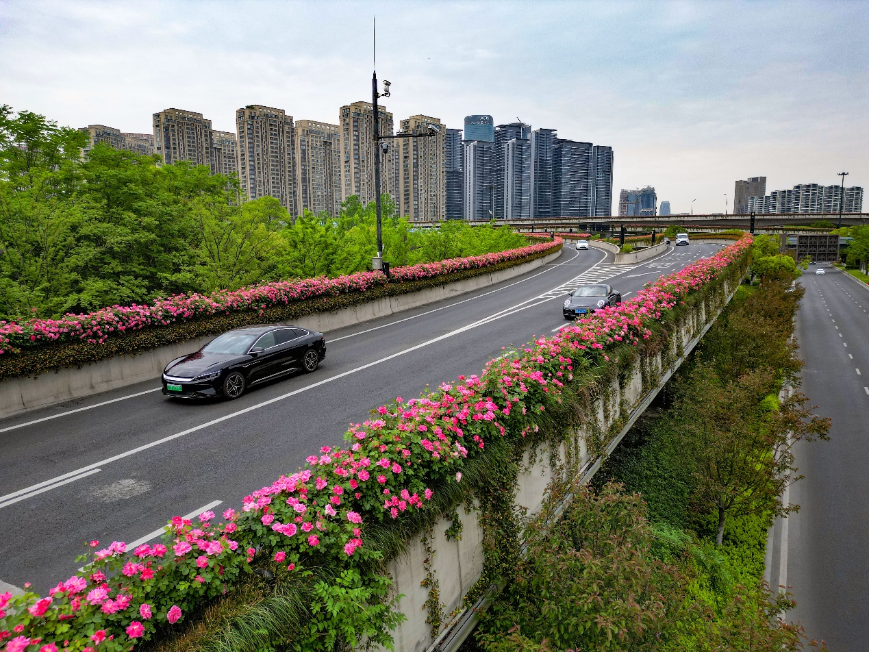 在杭州,月季不仅是一种花,更是一种精神象征。自2009年杭州首次将月季引入高架绿化试点,这一创新之举历经17年发展,已成为全国城市生态建设的典范。市园林文物局工作人员介绍,高架独特的立地条件——充足光照、低湿度环境,加之科学化的管理,包括给排水、盆体固定、土壤配置等精细化措施,最终形成“空中花廊”的独特景观。目前,杭州高架月季模式已被嘉兴、宁波、重庆等十余个城市借鉴;如今,“到杭州去看看高架月季花”也已成为不少游客的选择,这条“空中花廊”不仅美化了城市,更成为杭州“国家生态园林城市”的亮丽名片。