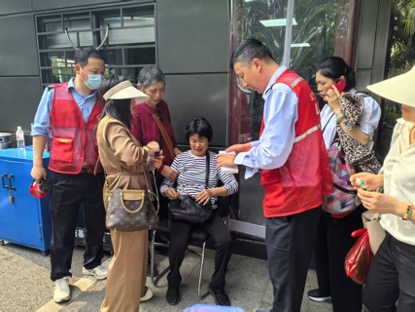 三小时后,西湖南线净寺附近一名游客突然晕倒,热心市民与停车场管理员迅速将其转移至苏堤停车场指挥中心。此时,李峥携急救箱赶到现场,判断其为中暑后,立即提供藿香正气水与温水,并持续监测体征直至其恢复意识。