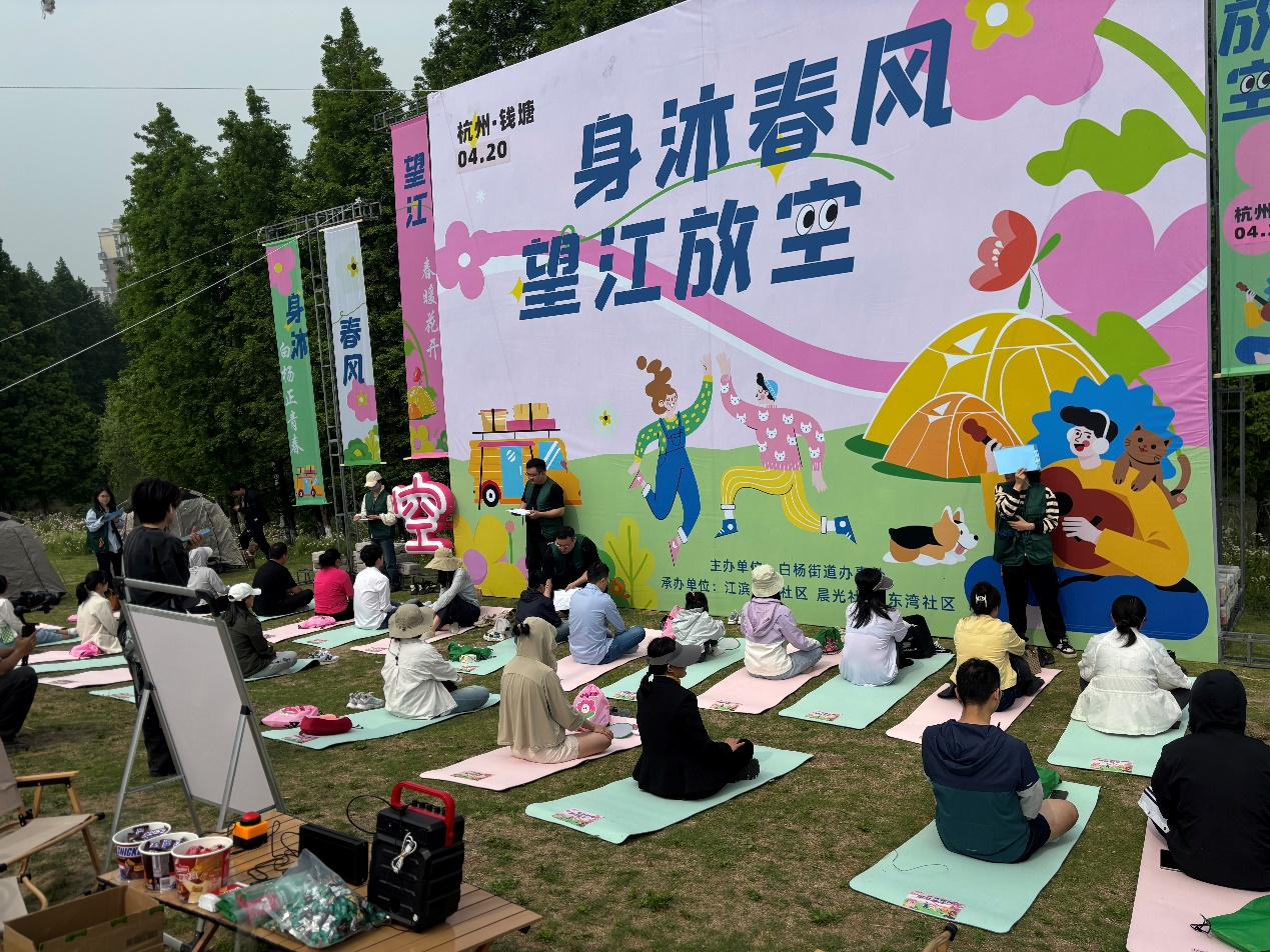 吹着江风,走上江堤,除了漫无目的地散散步,或是来一场酣畅淋漓的骑行,还能做什么?在刚刚过去的周末,钱塘区白杨街道联合江滨花园社区、晨光社区、东湾社区,举办了“身沐春风 望江放空”挑战赛。来自辖区的38名选手在江堤上开启了一场无声的放空比拼,大家在江堤上找到了一种全新的休闲方式。