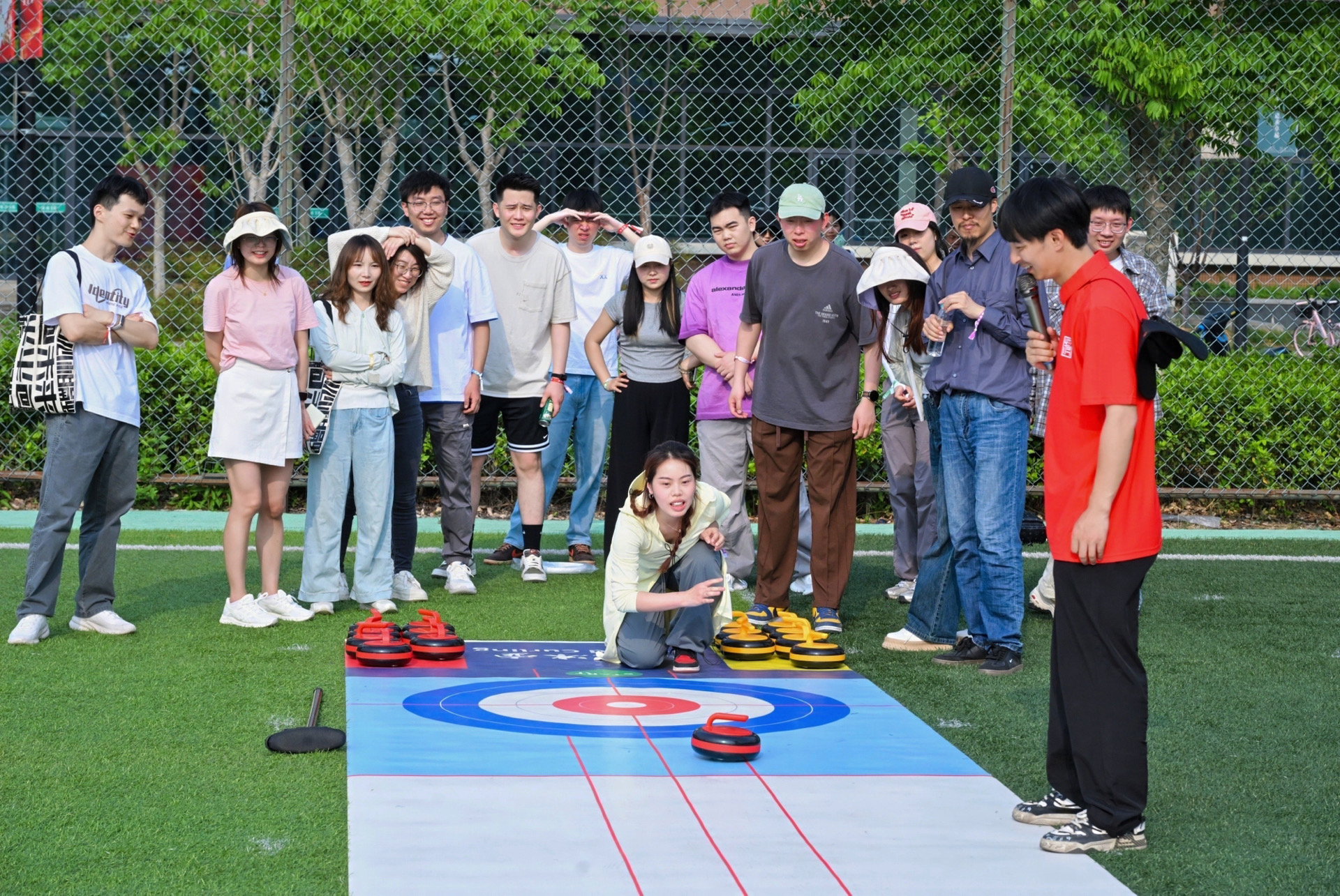 联谊派对活动精心设置了互动体验、露营休闲和拓展运动等七大板块,通过丰富多样的互动环节,满足青年群体的社交需求。在露营休闲区,青年们围坐畅谈,感受春日暖阳。拓展运动区则上演了趣味竞技,复古游戏“投壶”挑战赛,每一次精准的投掷都伴随着阵阵欢呼,展现侨青勇争第一的精神风貌;分组竞技的飞盘对抗赛,在专业教练的热情指导下,大家在奔跑中培养合作默契;需要双人配合的划船竞速挑战、考验团队协作的旱地冰壶比拼……参加活动的侨青在校园内洋溢着青春与活力,在交流互动中增进了解,拉近了彼此的距离。