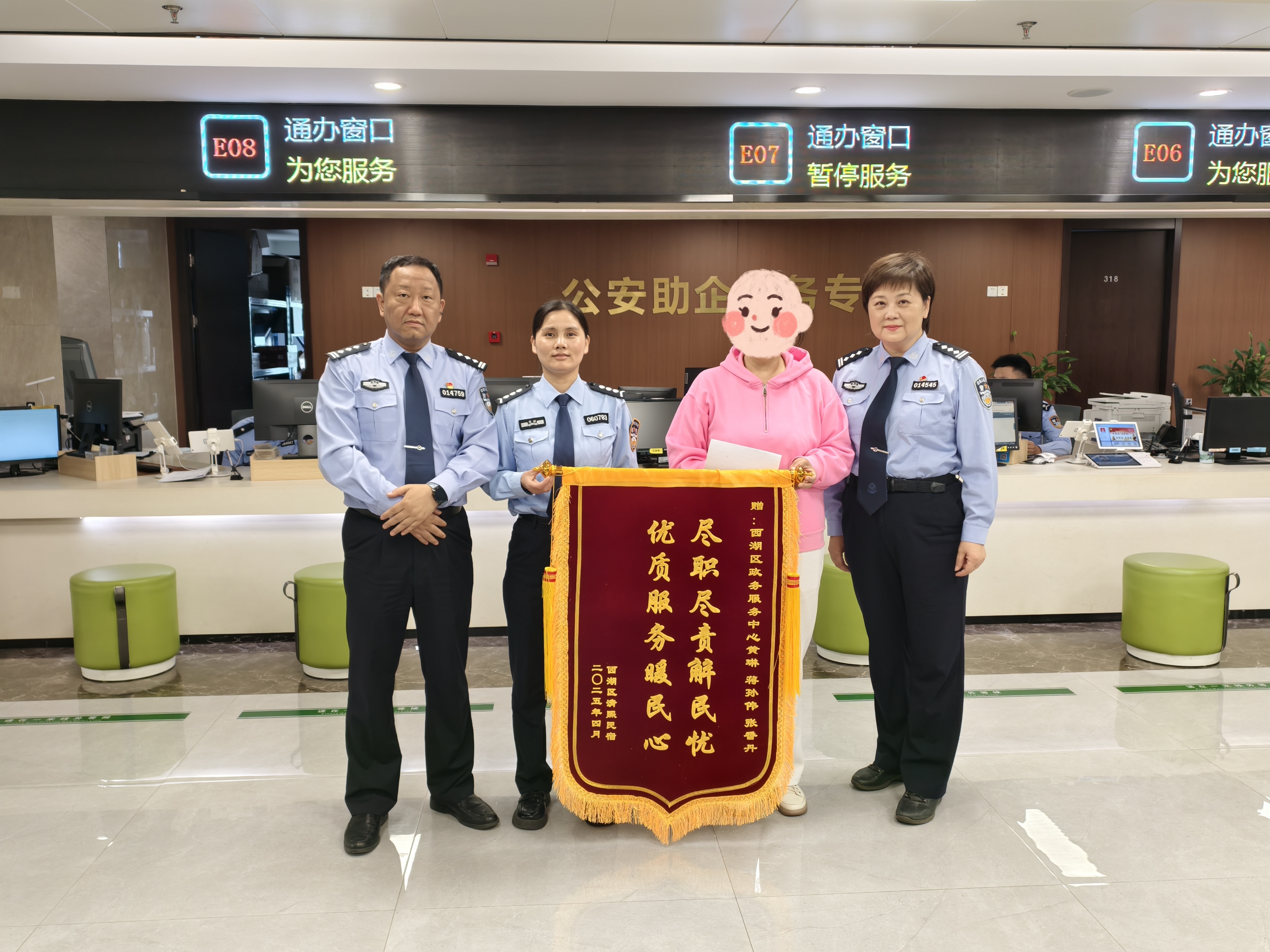 当日下午,宋女士带着厚厚的材料赶到窗口时,却被复杂的申报流程难住,表格不会填,系统不会传,急得直掉眼泪。窗口民警黄琳马上劝慰宋女士:“有什么困难和我说,可以帮忙的我们会全力帮你。”几句暖心的话让宋女士渐渐平复了心情。随即黄琳和辅警张香丹一起整理了宋女士带来的材料,经过仔细审核、提交上传,延时服务完成了全流程受理。“都下班了他们还在忙,就像自家事一样上心。”