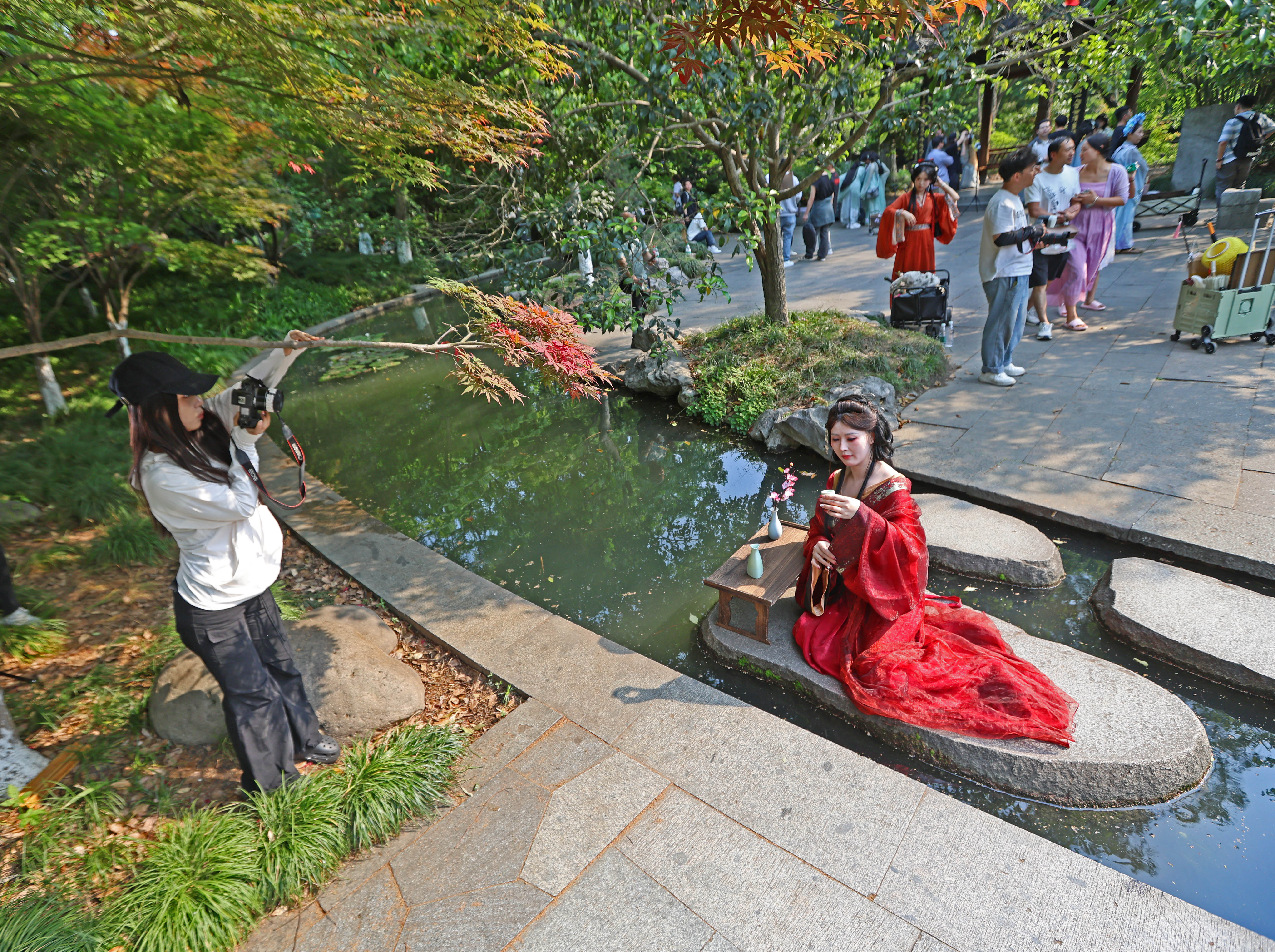 “现在年轻人对古装写真的要求越来越高,不仅要形制正确,还要拍出故事感。”资深摄影师华哥说,他最近新学了古风调色技巧,“让照片既有西湖的灵秀,又有古韵的厚重。”