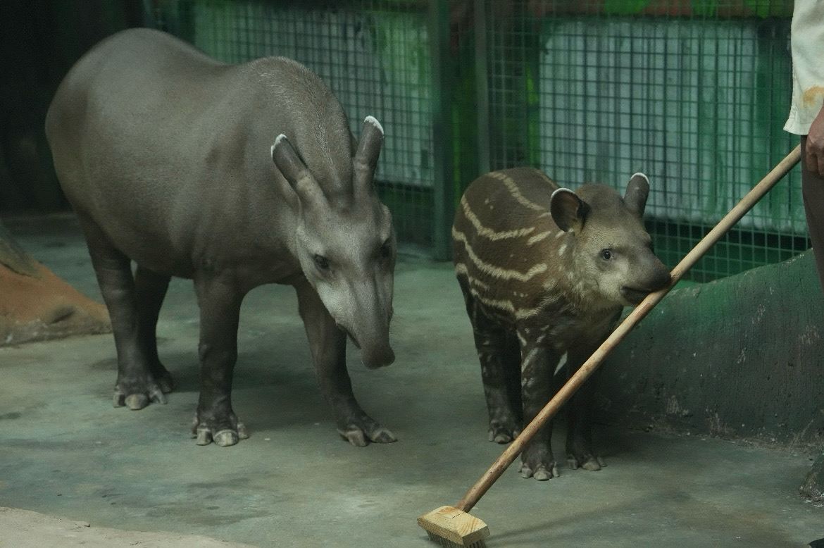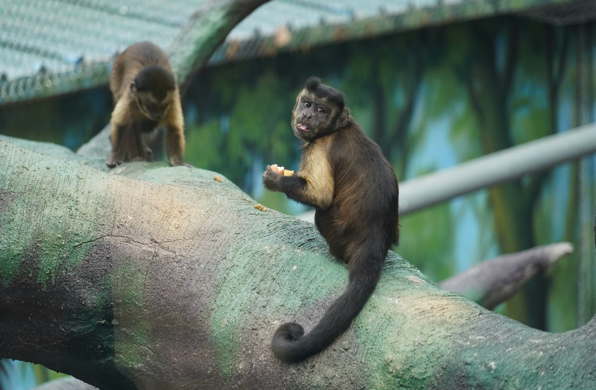 4月28日,在杭州野生动物世界迎来23周年庆之际,全新升级的“缤纷南美”动物展区也在这一天正式向公众开放。在新展区的“豪宅”中,除了可以见到“卡皮巴拉”、南美貘等广为游客喜爱的“老居民”外,首次引进的红脸蜘蛛猴也作为“新成员”正式加入杭州野生动物世界的“南美大家族”。