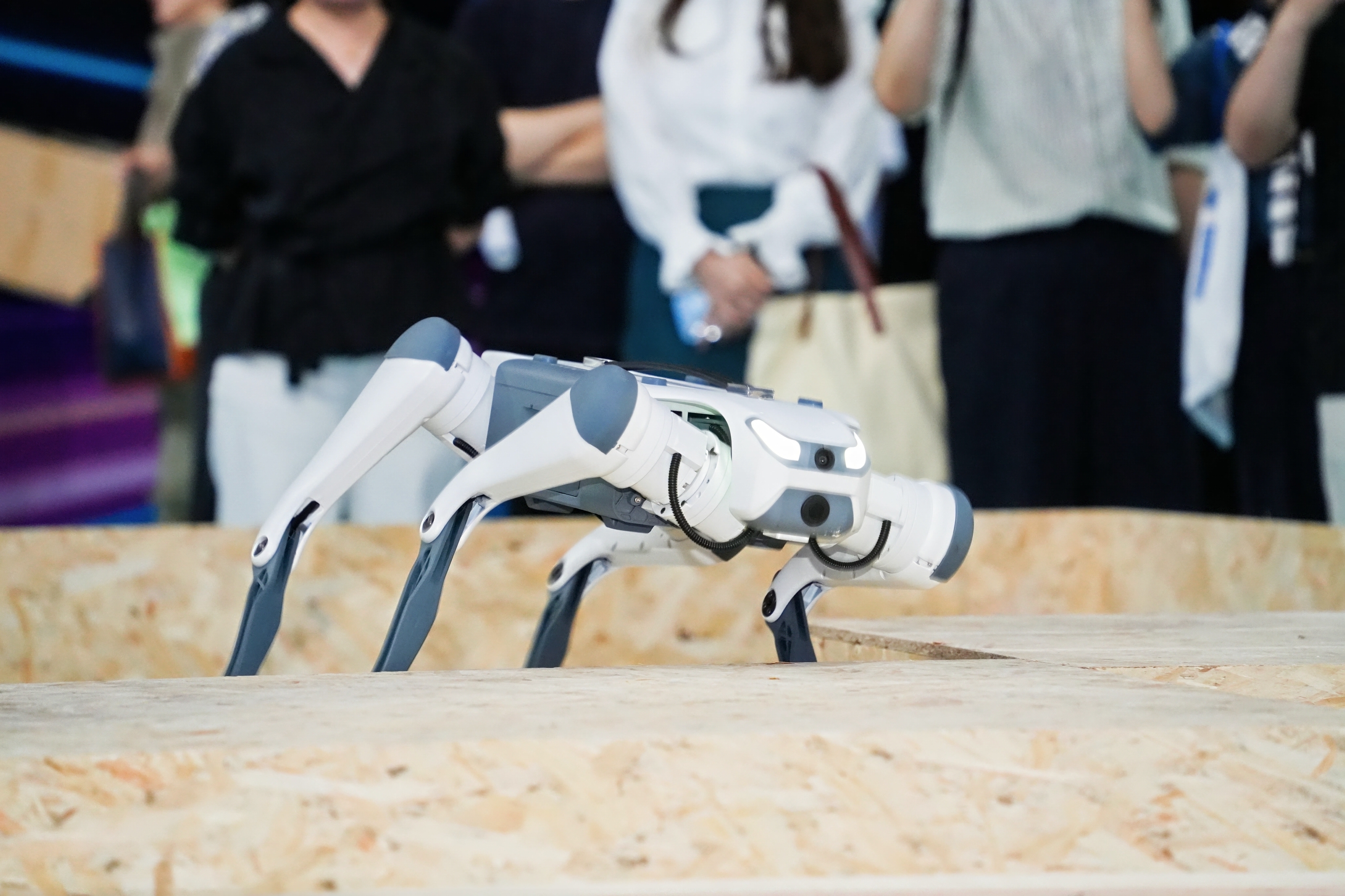 宇树科技、云深处、小米的四足机器狗组成了“AI宠物军团”,展开同场竞技翻越障碍。这些四足机器人不仅具备高难度动作能力,还能通过情感计算模块识别游客情绪,主动发起互动。如果喜欢,还可以上手操控“狗狗”们一起玩游戏。