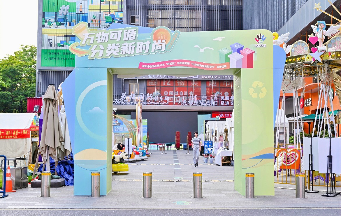 当天,由杭州市综合行政执法局、西湖区人民政府联合主办的杭州市生活垃圾分类“进餐饮”志愿服务暨“分类新时尚主题餐厅”宣传活动在西湖区文一路物美广场举行。