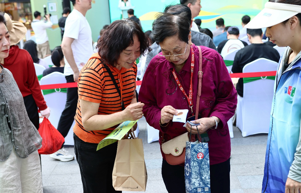 现场的“万物可循”主题市集,设置了多个环保互动区域,包括智能回收设备、垃圾分类趣味游戏、闲置物品绿色兑换等板块。市民可将使用过的杯套和杯子投递至智能回收设备,参与资源循环计划并兑换环保礼品。