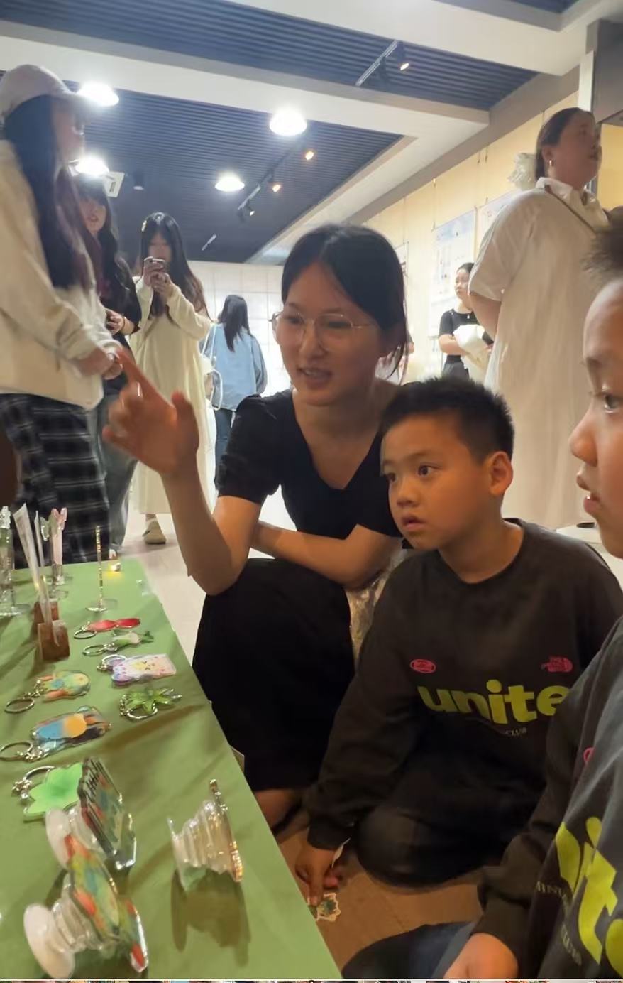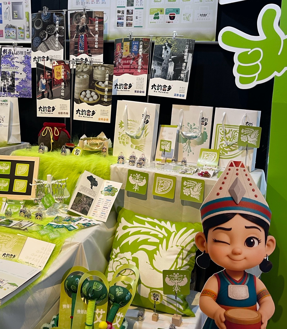 “我们是宁波过来的旅游团,听说这里有个大学生的展,就一起来看看,有畲族的服装、桐庐的中药、富春江江鲜这些元素,我们也对桐庐更了解了,下午准备直接去莪山体验畲族文化了。”一名看展观众说道。