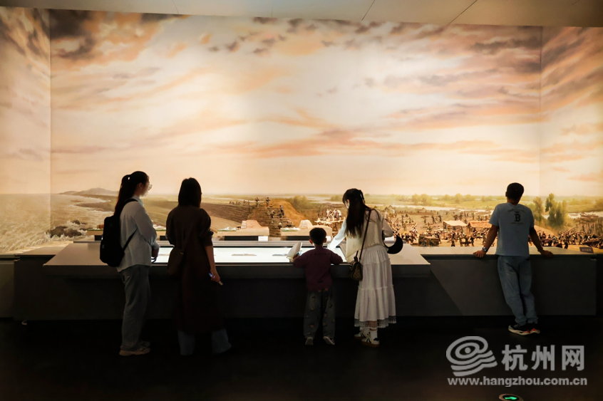 在《金平湖——平湖历史文化展》的展厅,很多市民游客对一个陶罐驻足欣赏,大家纷纷猜测陶罐上绘制的图案是什么意思。