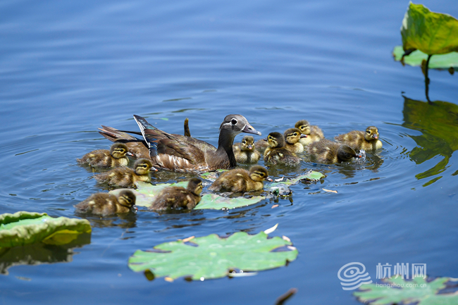 5月的西湖,陆续迎来新生命的诞生,野生鸳鸯宝宝接二连三地破壳而出。走在湖边,总能欣赏到一幅幅鸳鸯妈妈带着小家伙们悠然畅游的温馨画面。