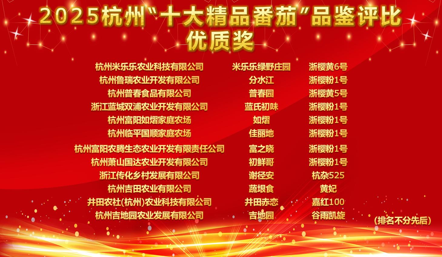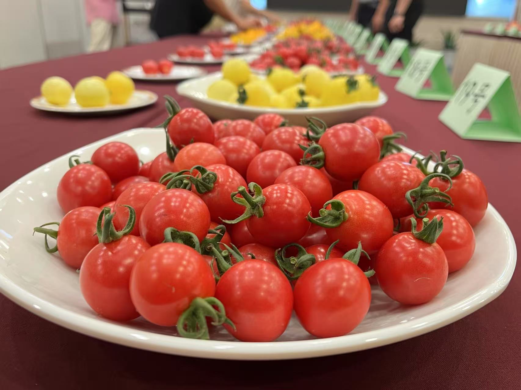 在2025杭州“十大精品番茄”品鉴评比活动现场,26家生产主体的28个樱桃番茄样品和10个大中果型番茄样品精彩亮相。
