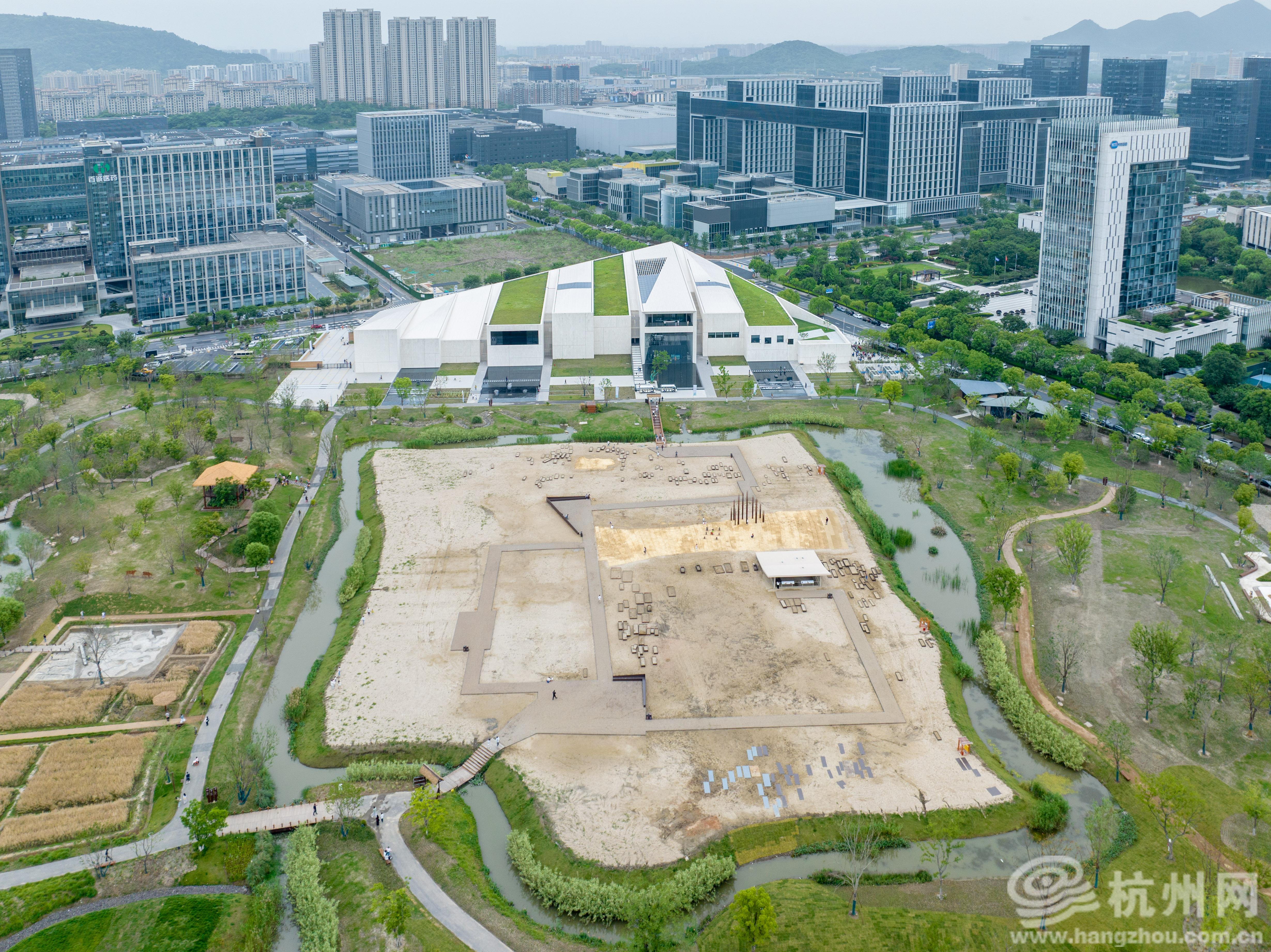 作为全省首个以“考古”为主题的博物馆,玉架山考古遗址公园(博物馆)地处杭州市临平开发区,主要由临平遗址群、茅山遗址和玉架山遗址三部分组成,西距良渚古城遗址20余公里,总面积超12万平方米,其中博物馆建筑面积约2.5万平方米。