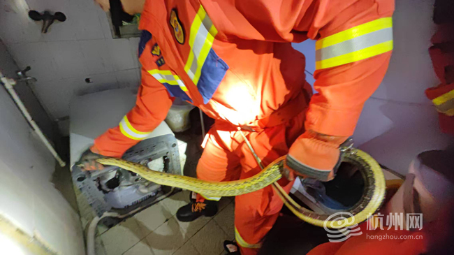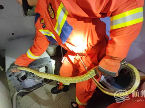 “消防员吗?家里进了一条大蛇,藏在洗衣机里,太吓人了!”一通紧急报警电话打破平静。报警人表示,自己在家洗衣服时,突然听到厕所水管传来窸窸窣窣的声响,转头只瞥见一个长长的黑影,一闪而过。
