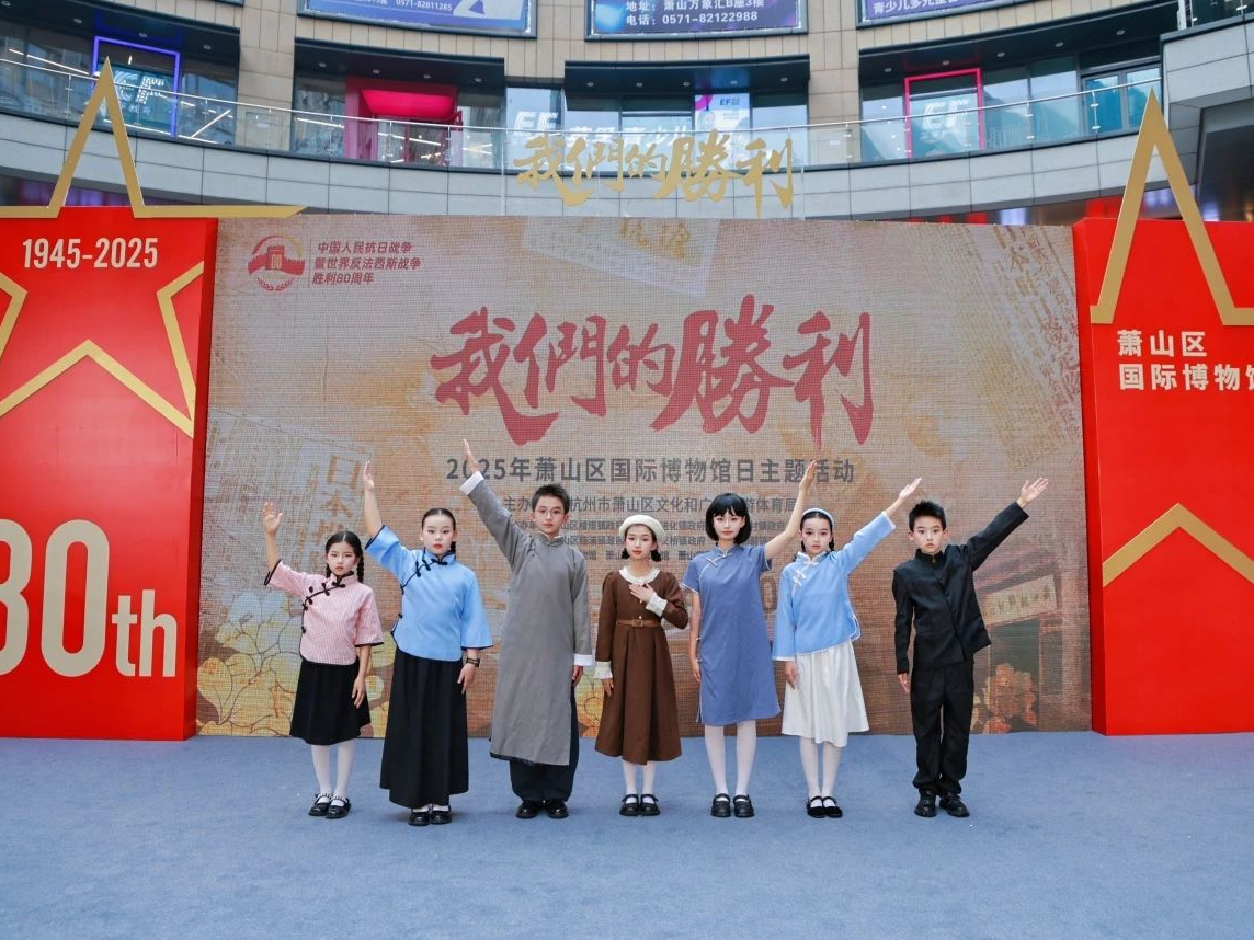 2025年5月18日,为纪念中国人民抗日战争暨世界反法西斯战争胜利80周年,由杭州市萧山区文化和广电旅游体育局主办,楼塔镇、进化镇等七个镇政府及萧山博物馆、抗战纪念馆等多家单位联合承办的“我们的胜利”国际博物馆日主题活动在杭州萧山万象汇潮音广场盛大启幕。活动以“沉浸式+抗战记忆”为主线,通过舞台演绎、互动体验、非遗手作等形式,带领市民穿越烽火岁月,共溯红色记忆。