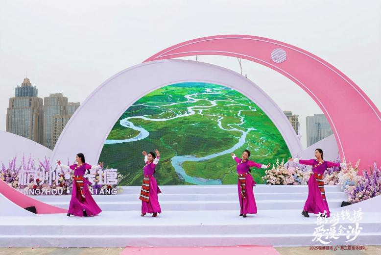 近日,“囍有钱塘·爱漫金沙”钱塘区第三届集体婚礼活动在金沙湖畔举行。25对来自教育、医药、智造等领域的新人,在金沙湖畔许下爱的誓言。而这场融合传统文化、潮流元素与东西部协作情谊的盛典,不仅是新人的幸福起点更是钱塘“婚恋+文旅+消费”新业态的精彩呈现。