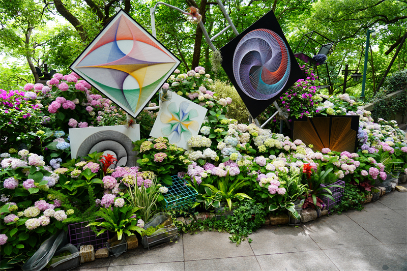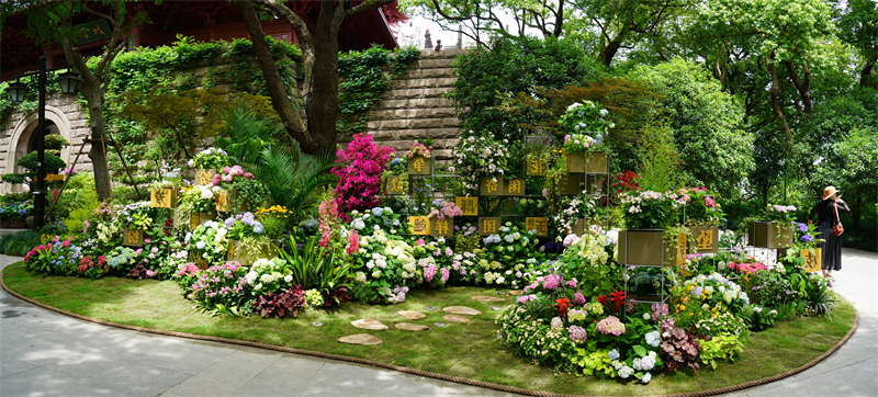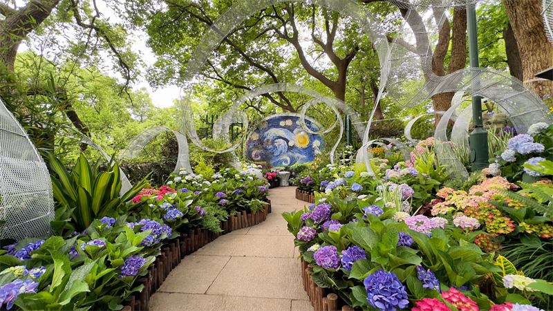 在特色品种展示区,精选出100余种八仙花品种惊艳亮相,涵盖经典园林造景优选品类。展区通过花艺应用场景,完整呈现八仙花从自然物种到人文符号的多重价值。