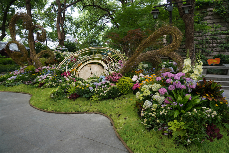 特色双栖展区分为特色品种展示区和精品花艺展区,位于城隍阁仪门、城隍庙周围,主要以艺术插花、组合盆栽和环境小品等形式展现。